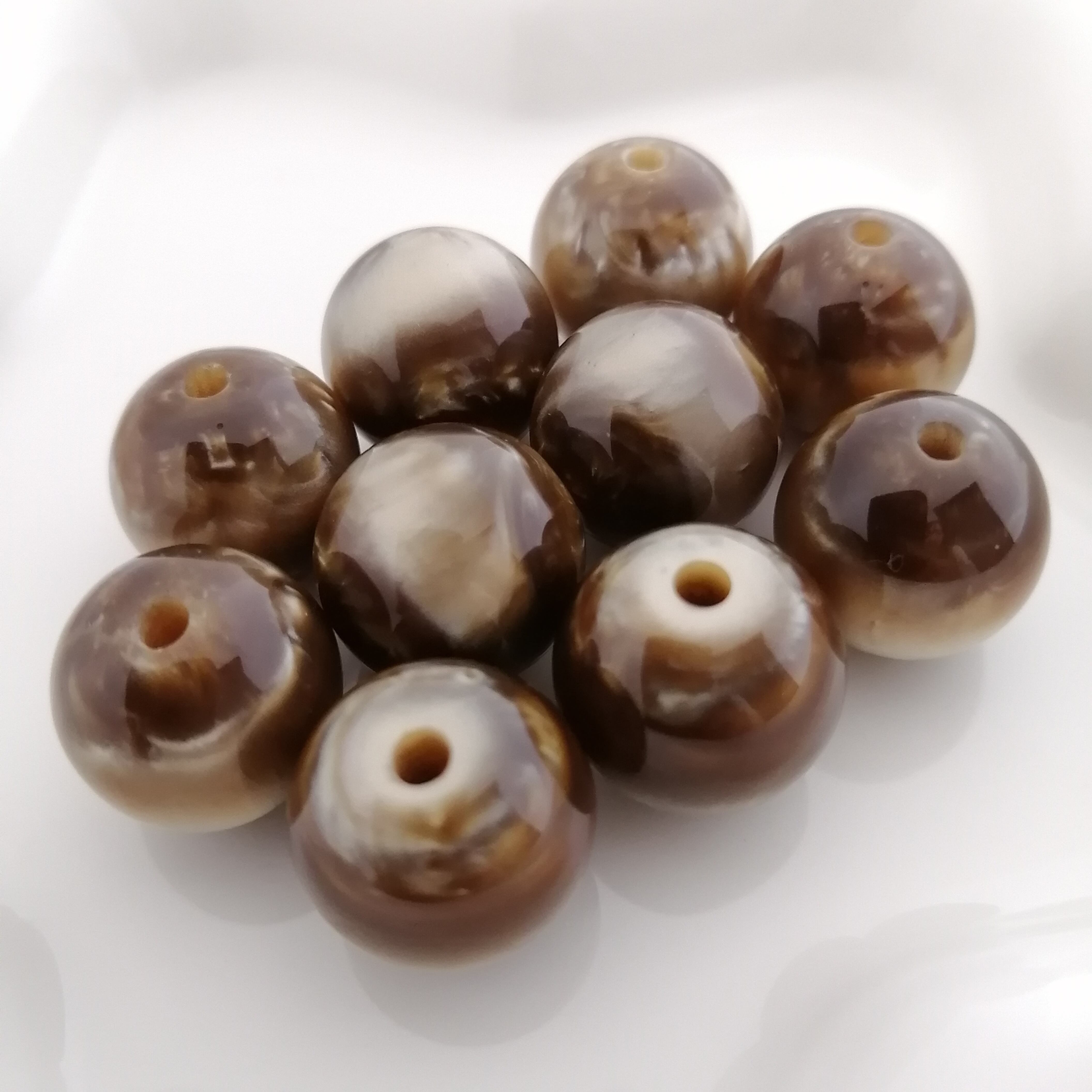 丸ビーズ レジン 茶 約16mm 10個 [A031]