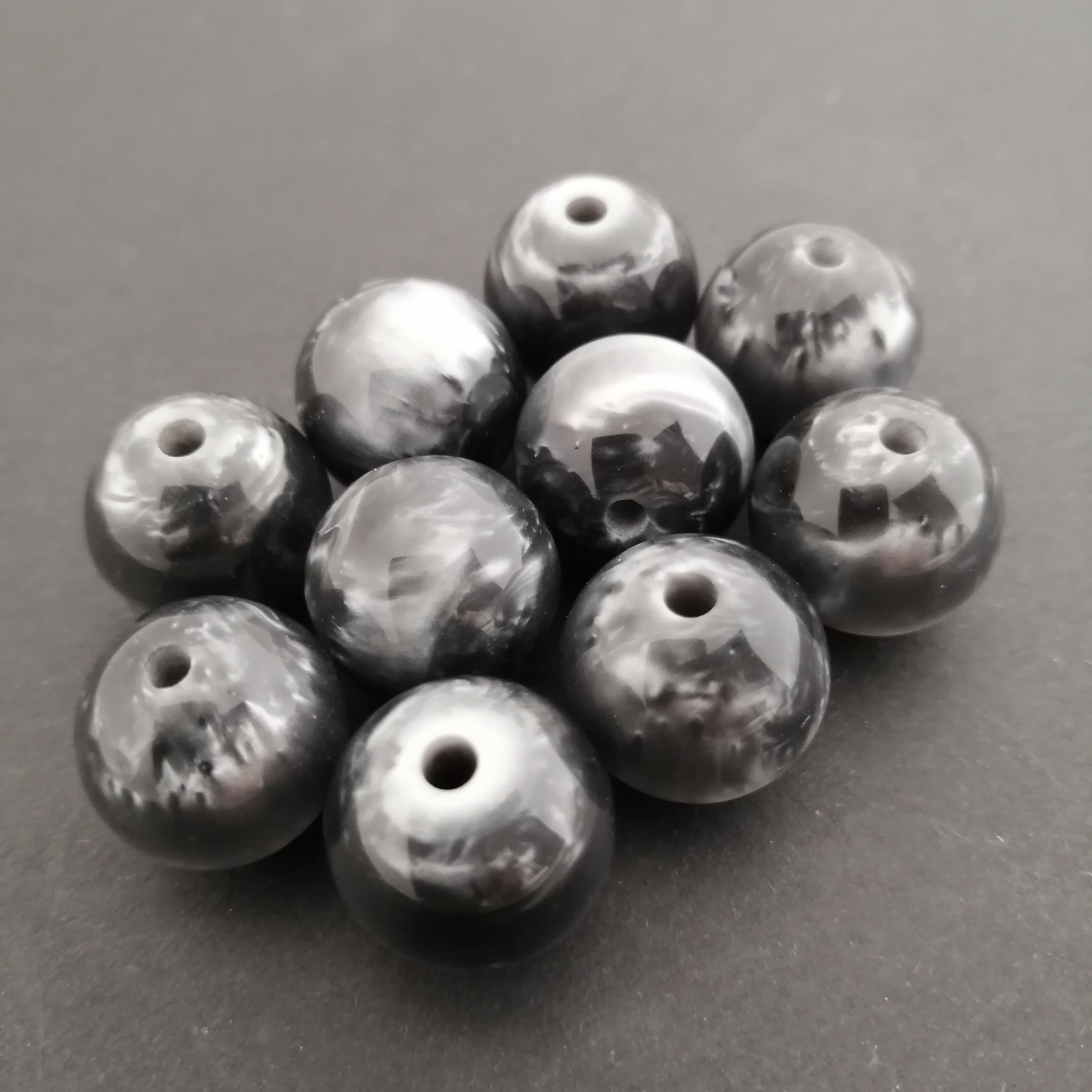 丸ビーズ レジン 黒 約16mm 10個 [A032]