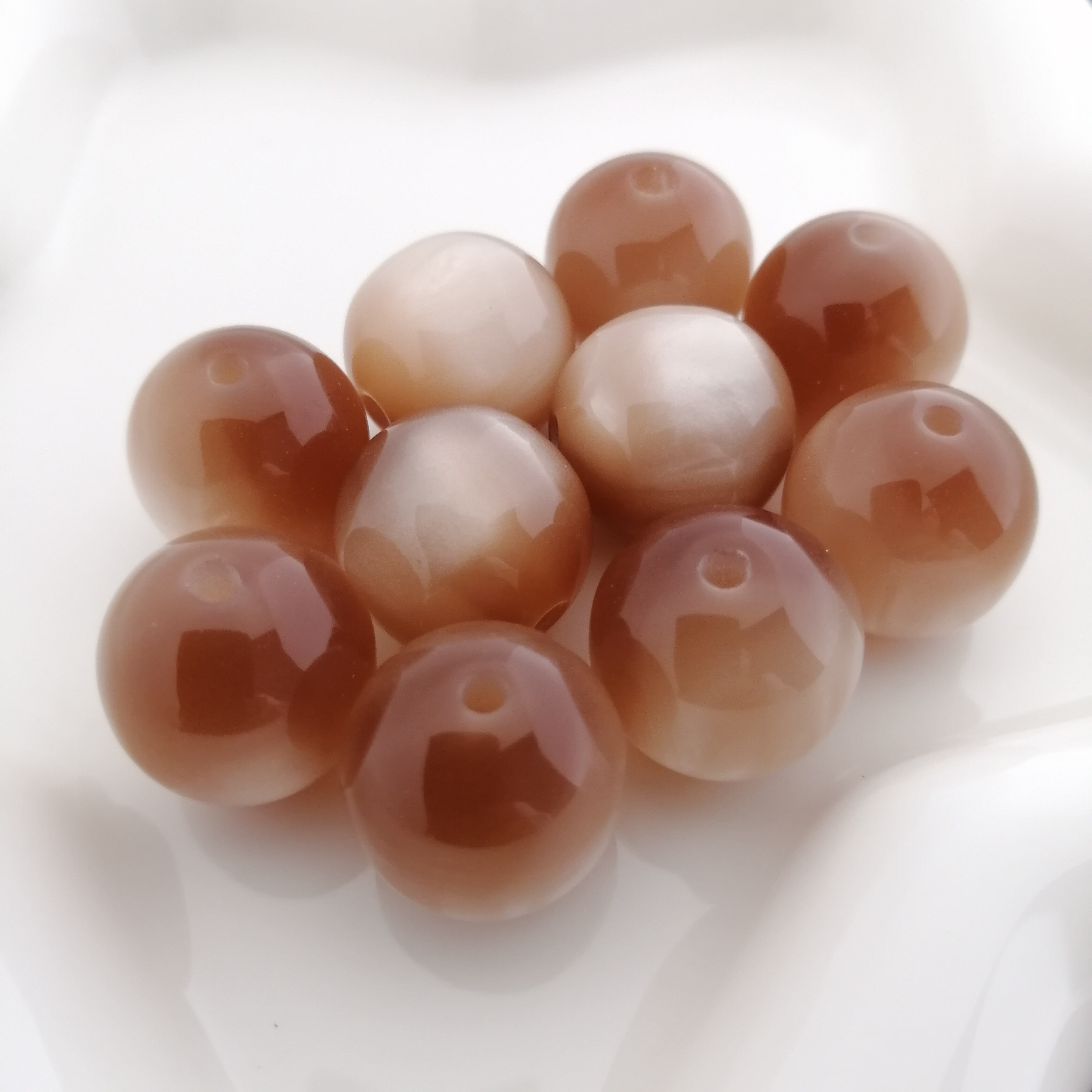 丸ビーズ レジン ベージュ 約16mm 10個 [A035]