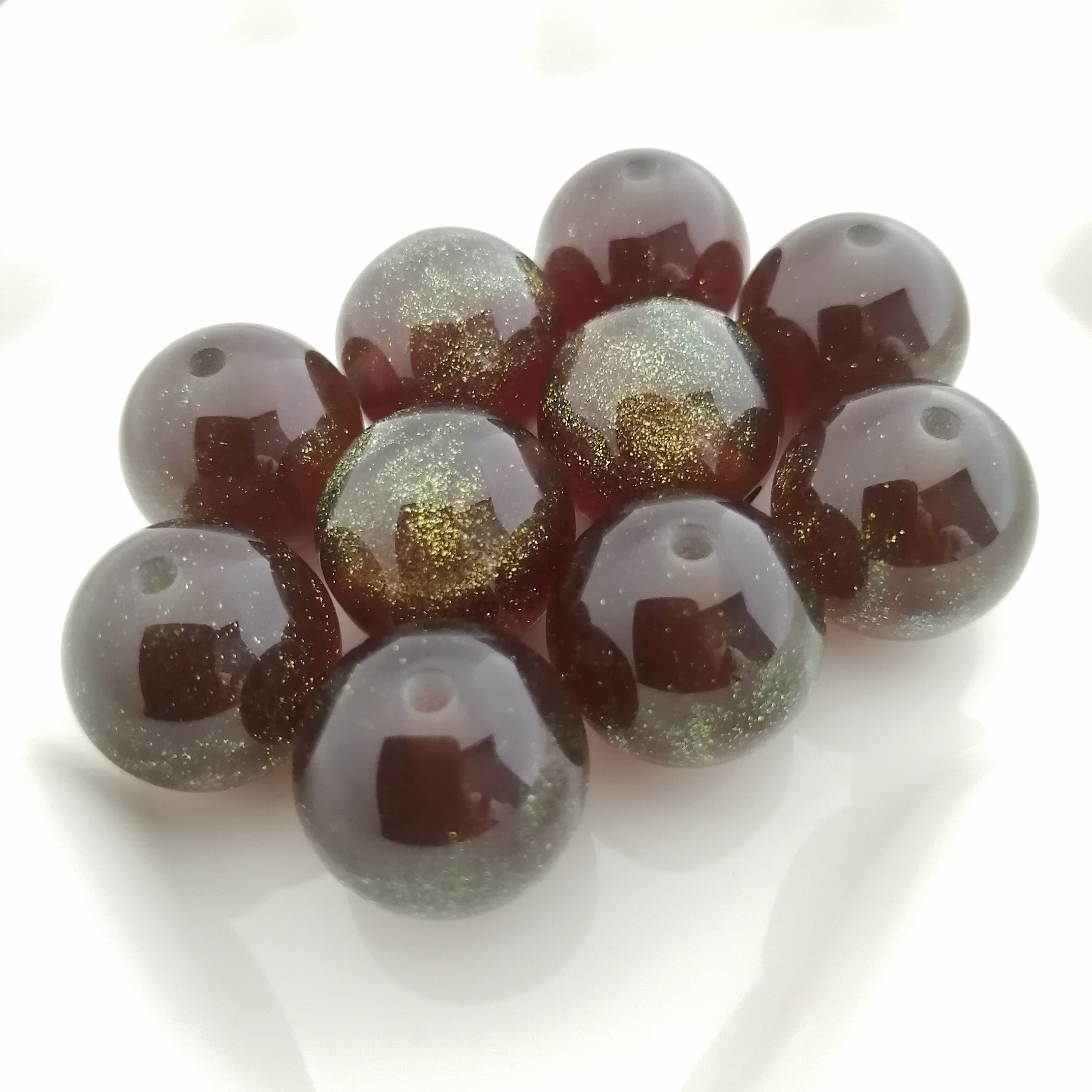 丸ビーズ レジン 黒(ラメ) 約16mm 10個 [A038]