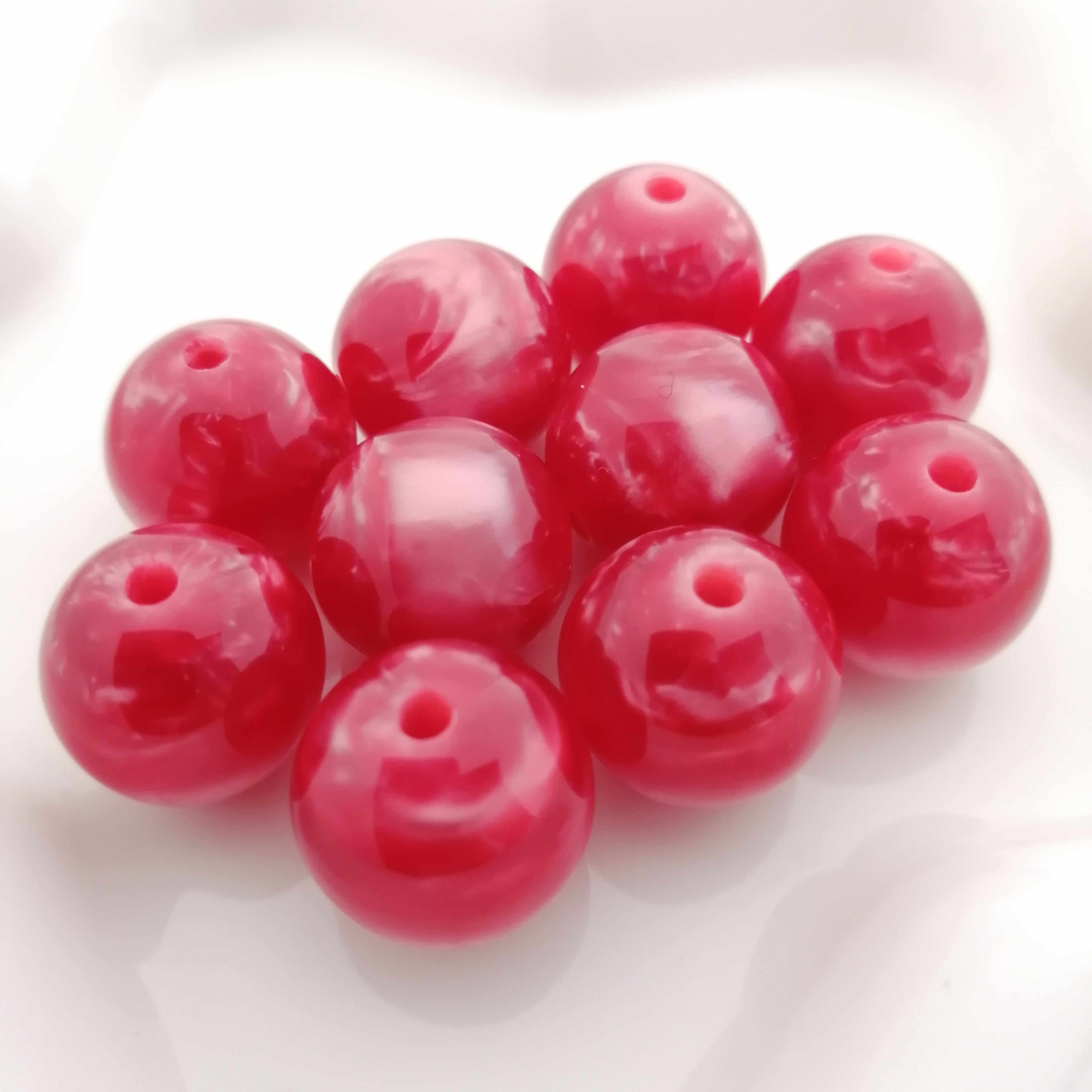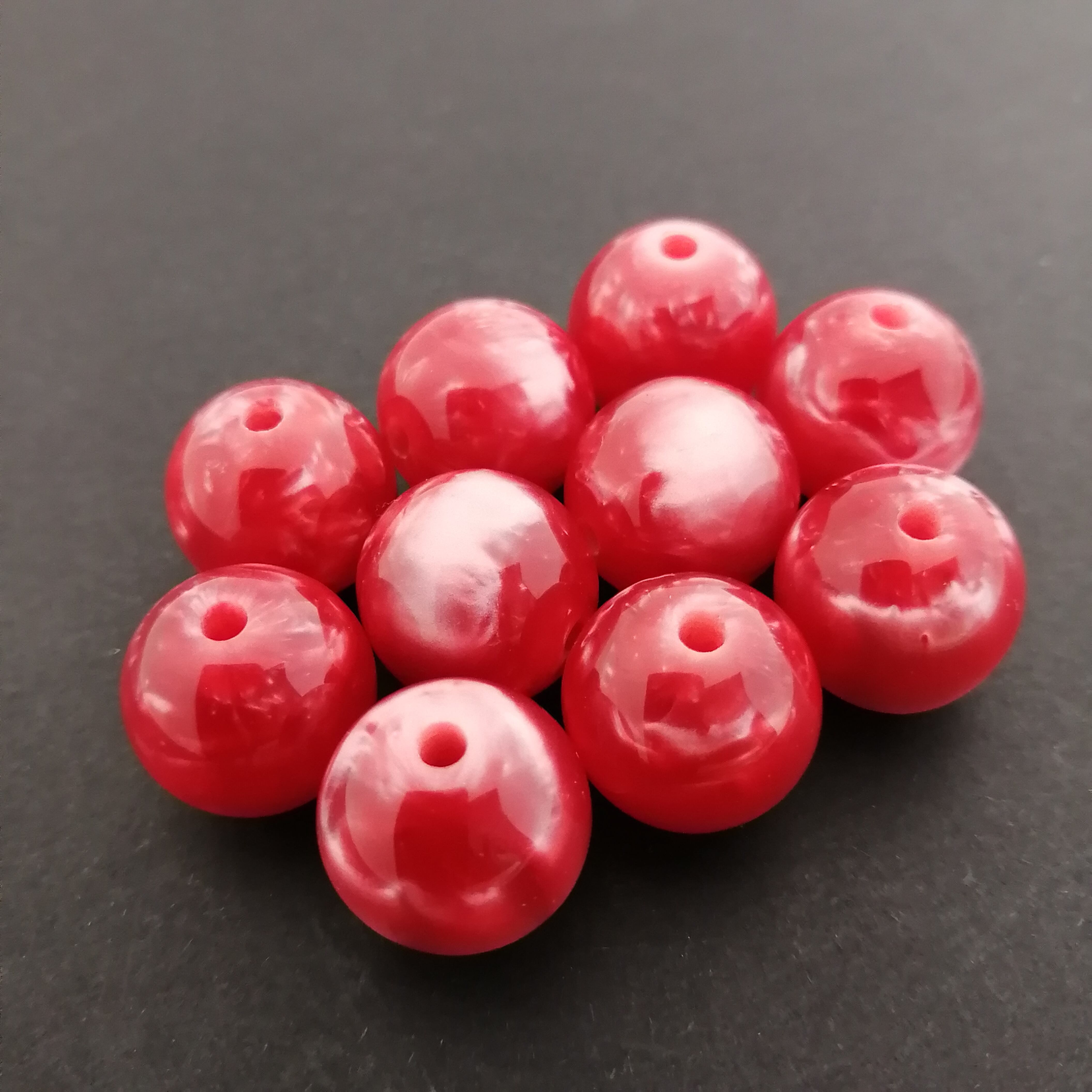 丸ビーズ レジン 赤 約16mm 10個 [A039]