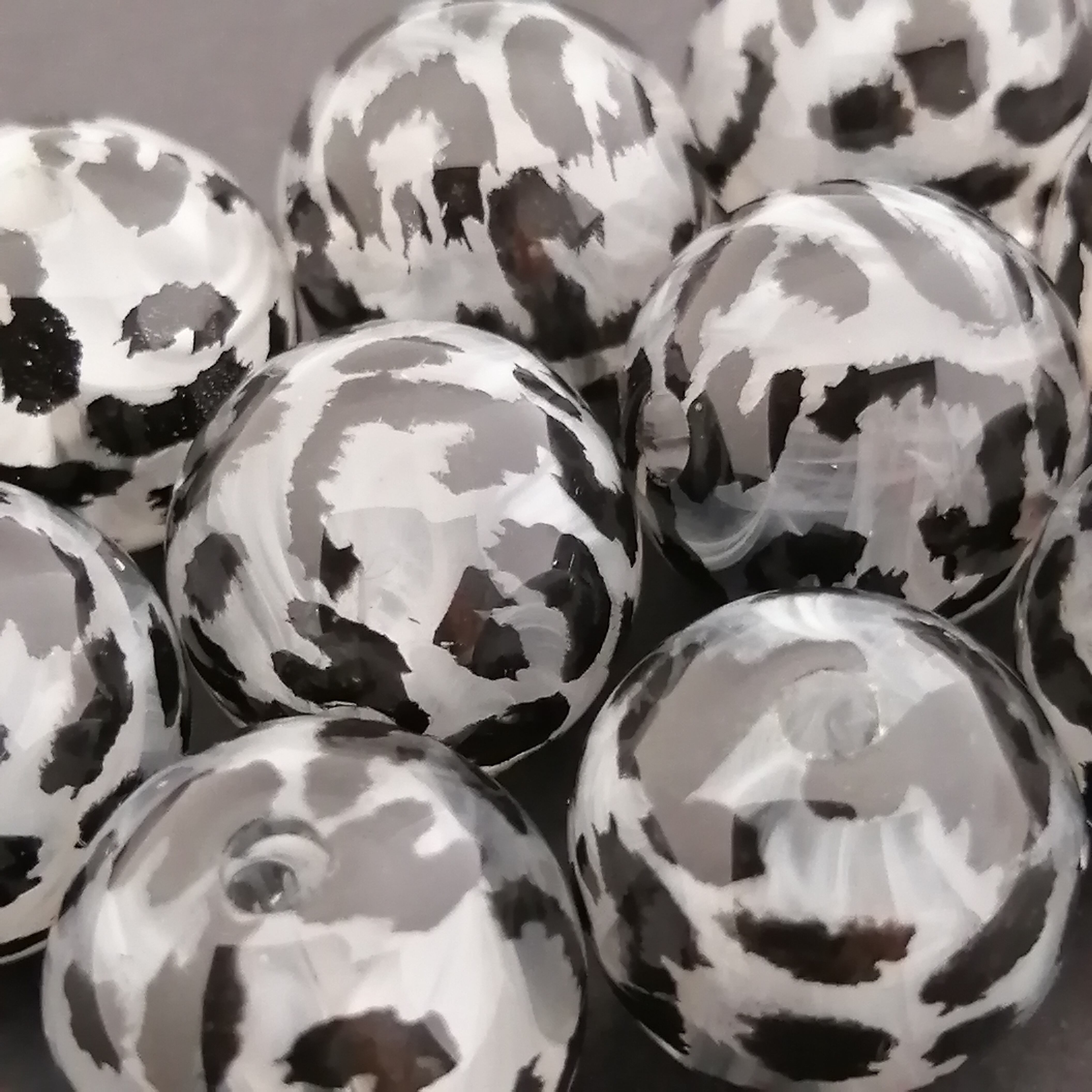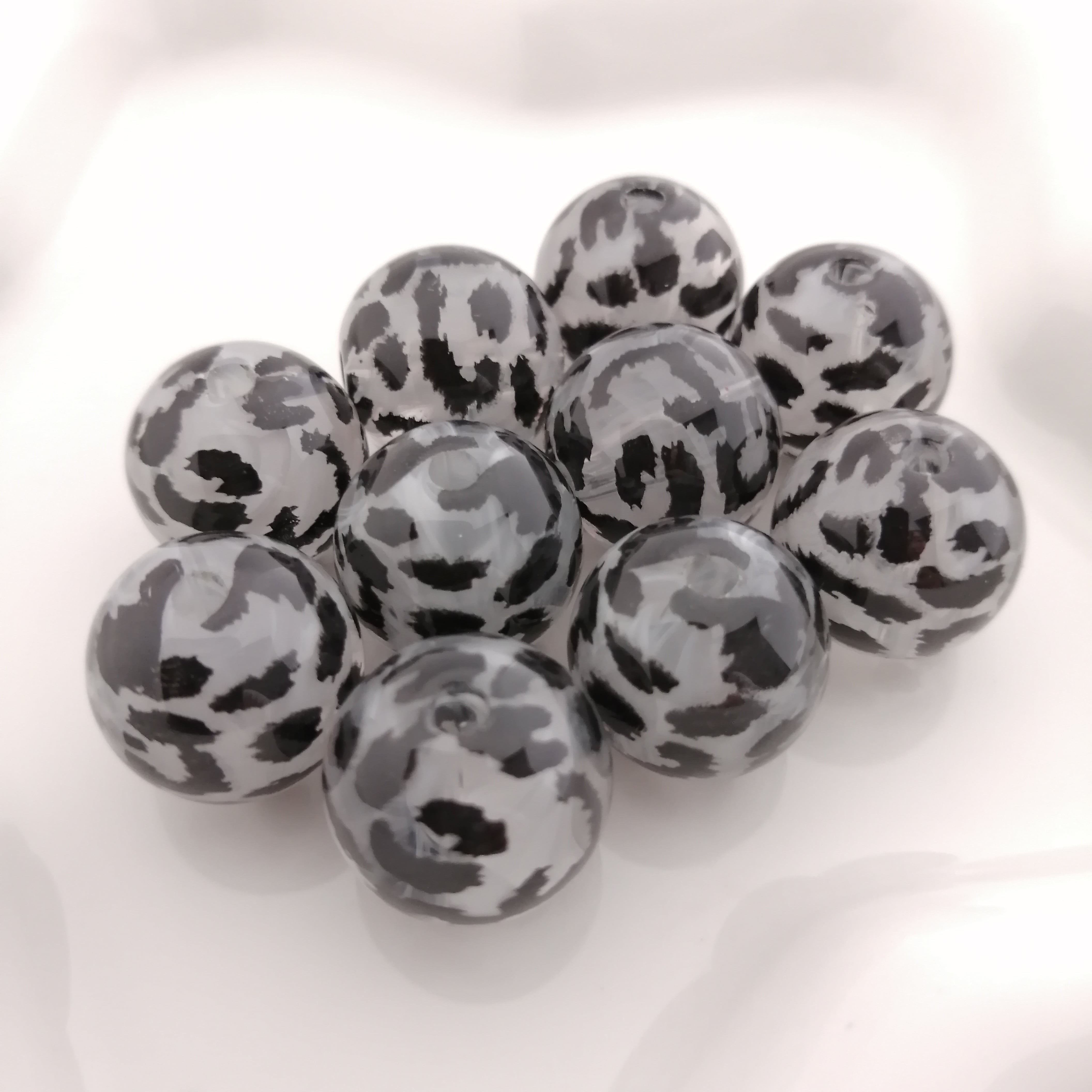 丸ビーズ レジン 白(ヒョウ柄) 約16mm 10個 [A040]