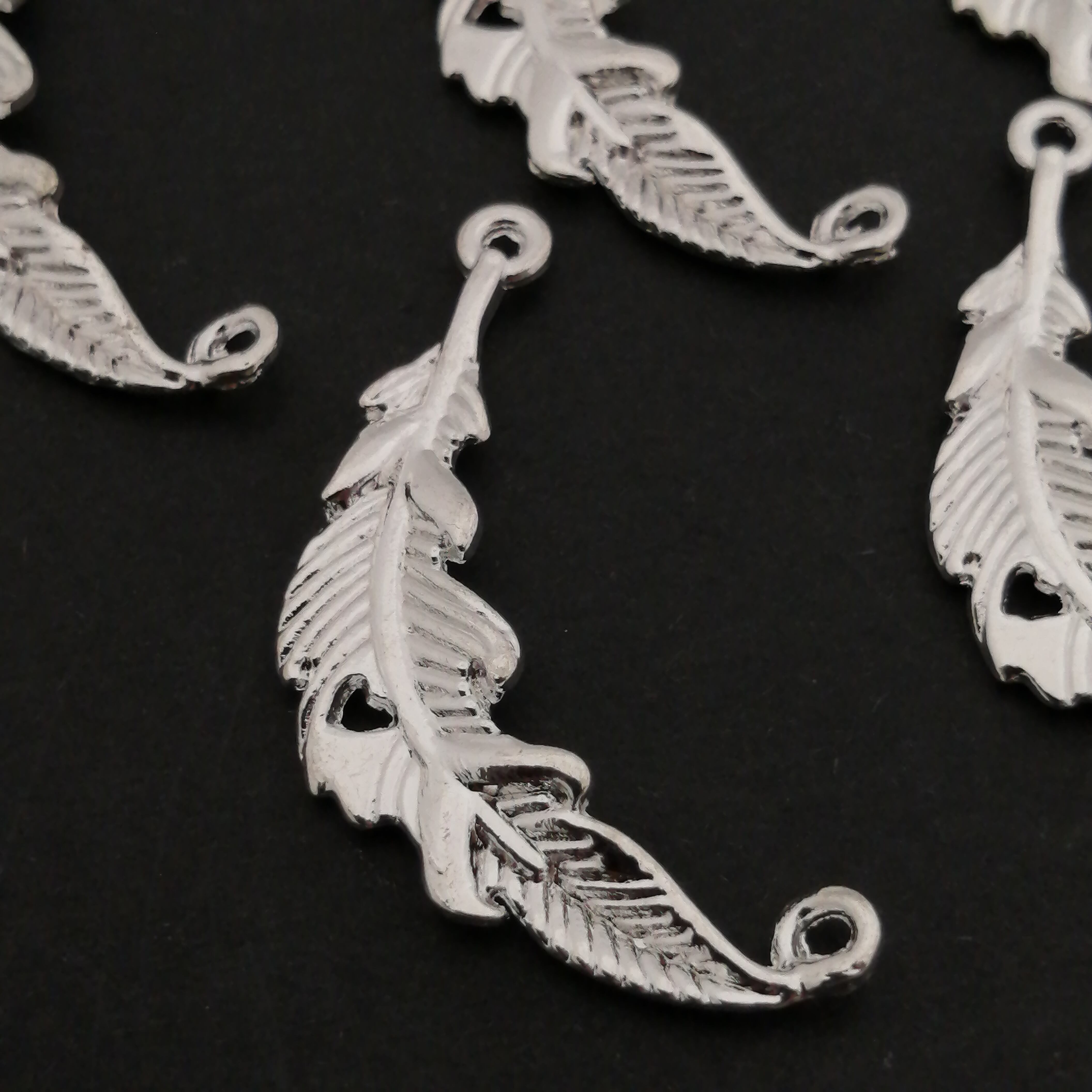 リーフ チャーム 合金 シルバー 約37×15mm 5個 [A044]