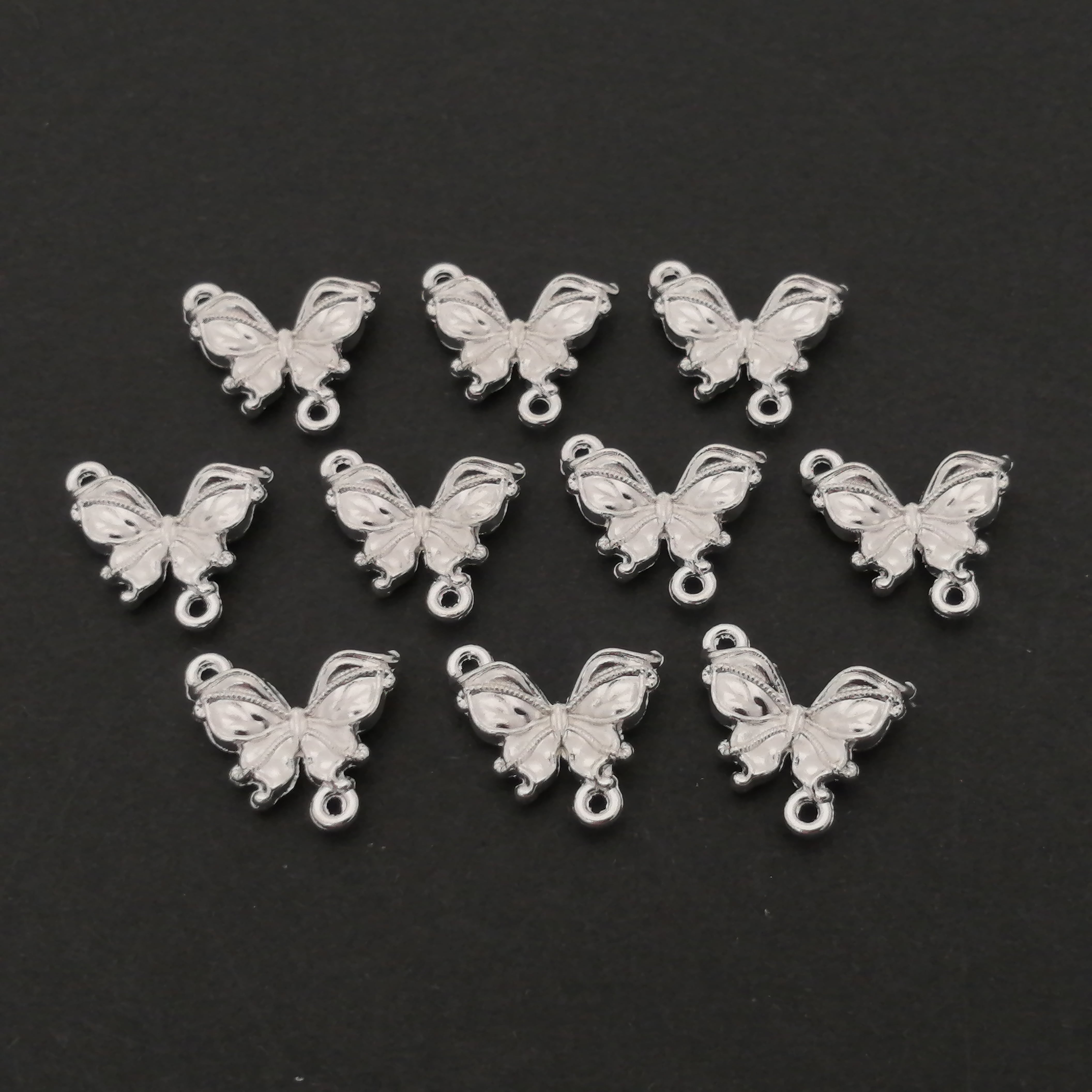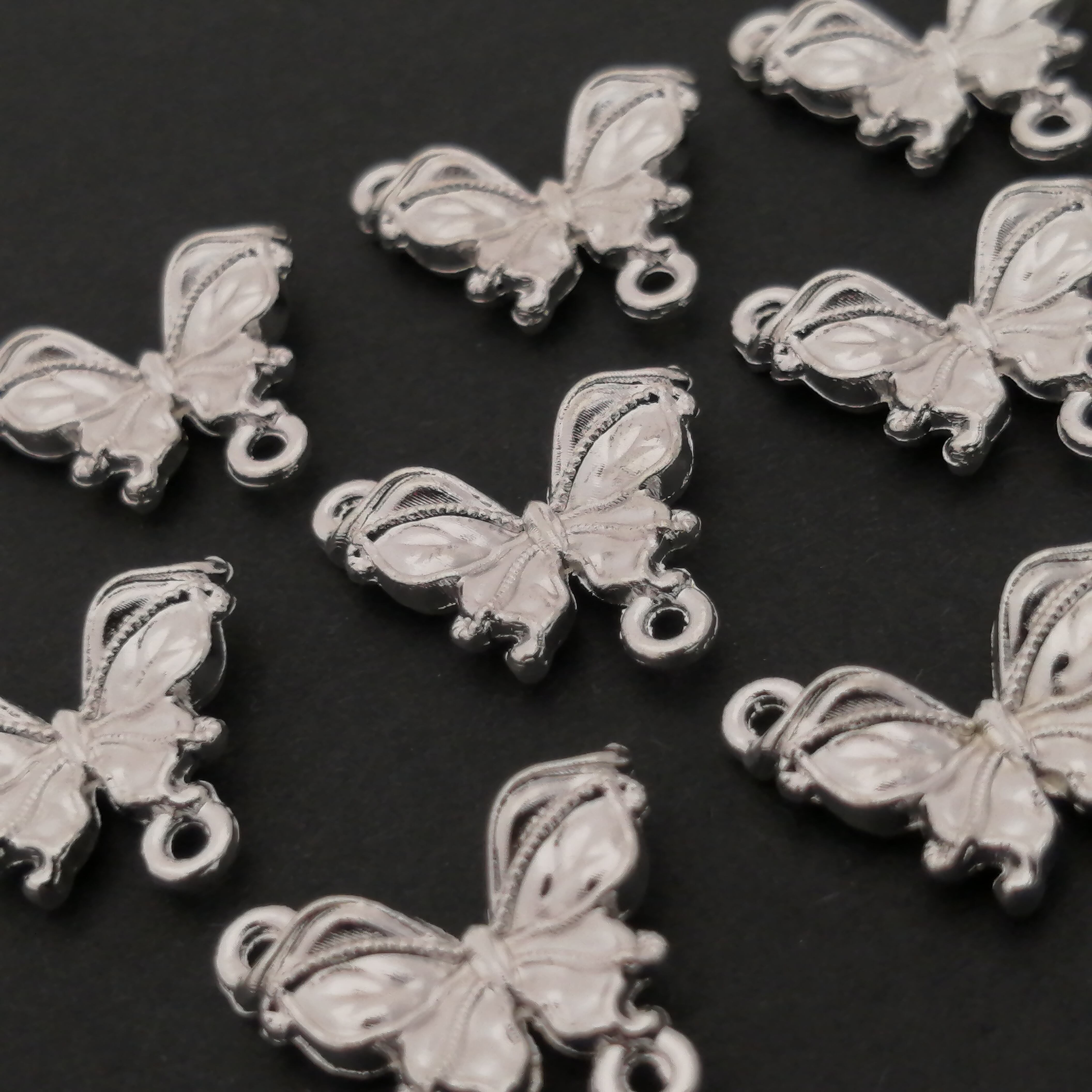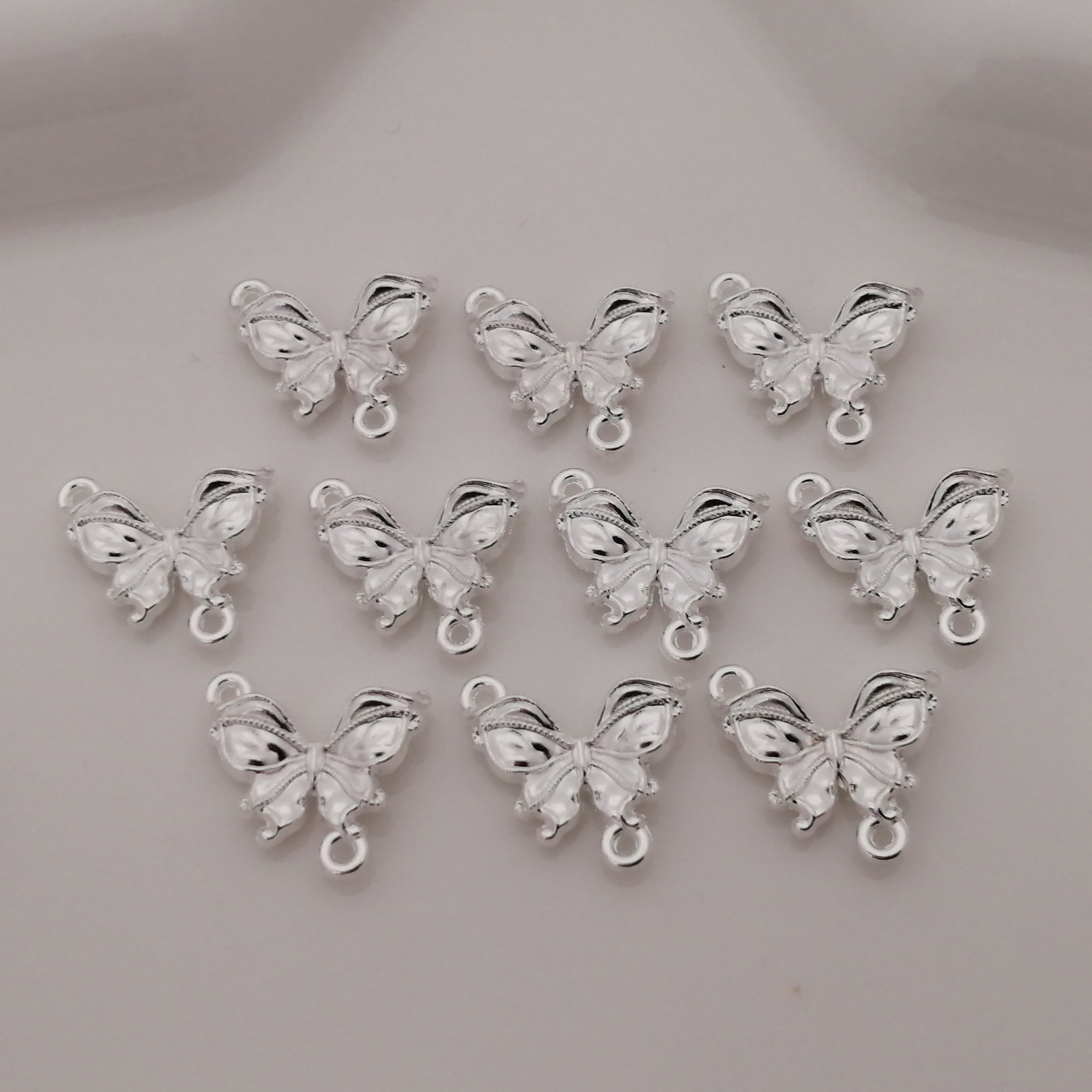 蝶々 チャーム 合金 シルバー 約16×14mm 10個 [A115]